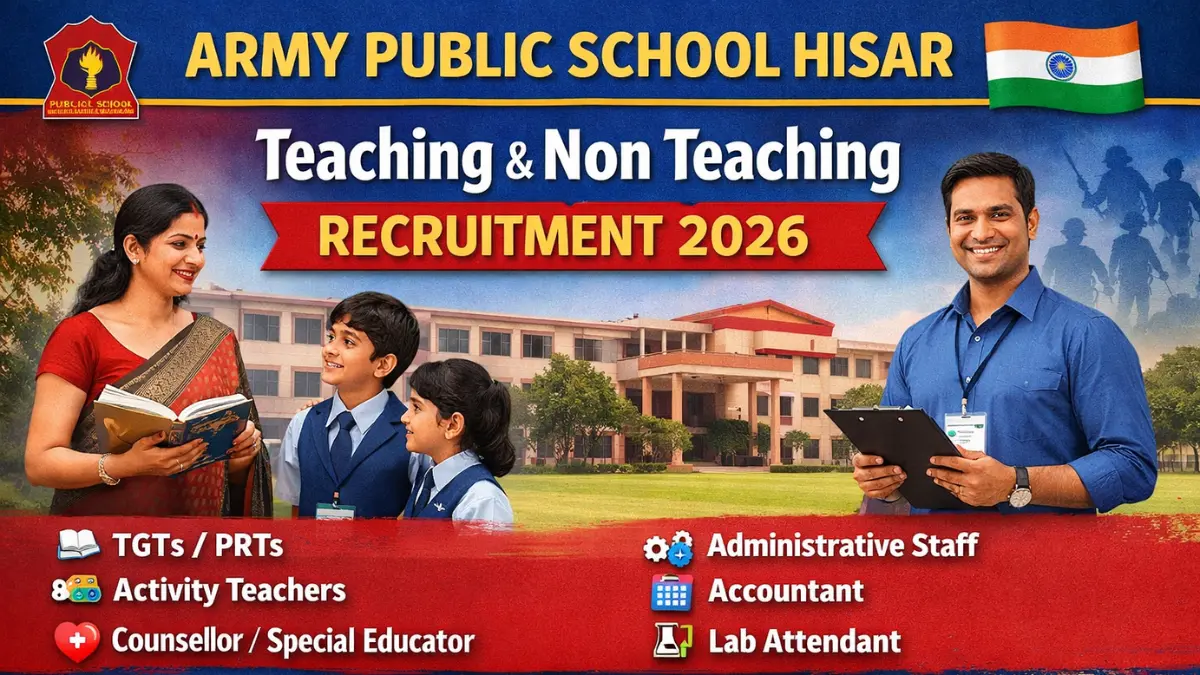 APS Hisar Recruitment 2026: The Army Public School Hisar has released the official Notification for the recruitment of Teaching and Non Teaching Posts. The total number of posts for APS Hisar Recruitment 2026 is 41. The APS Hisar Recruitment 2026 Notification has been released on 18 January 2026 and Application will be accepted from 18 January 2026 to 29 January 2026.