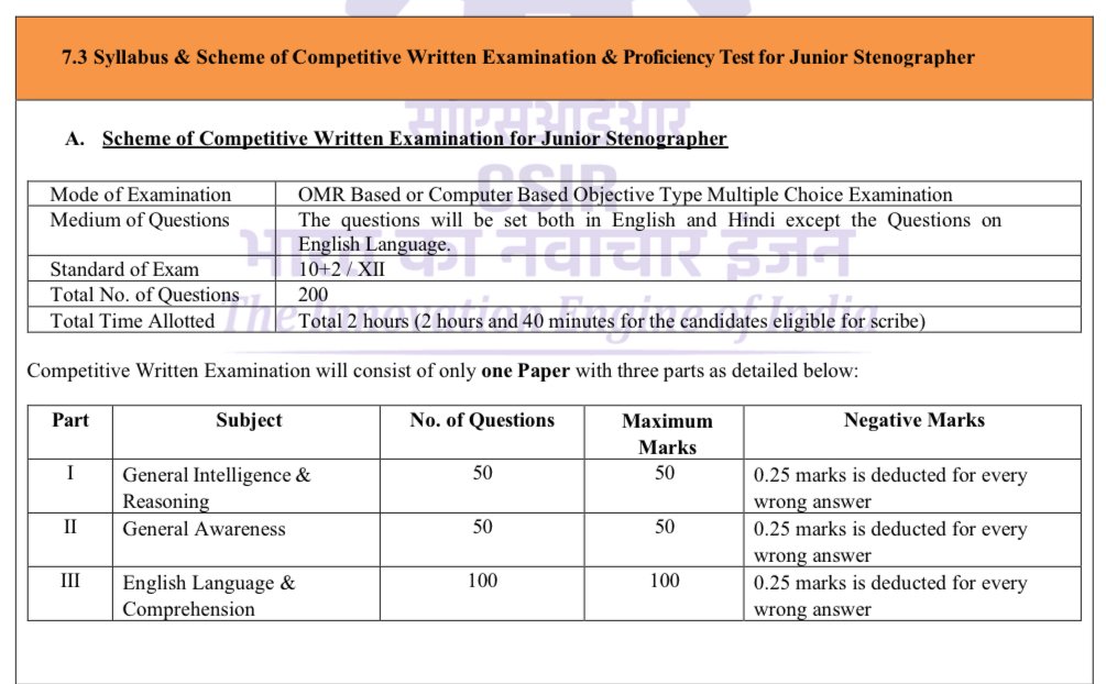 Candidates have to pass 10+2/XII or its equivalent and proficiency in stenography as per the prescribed norms