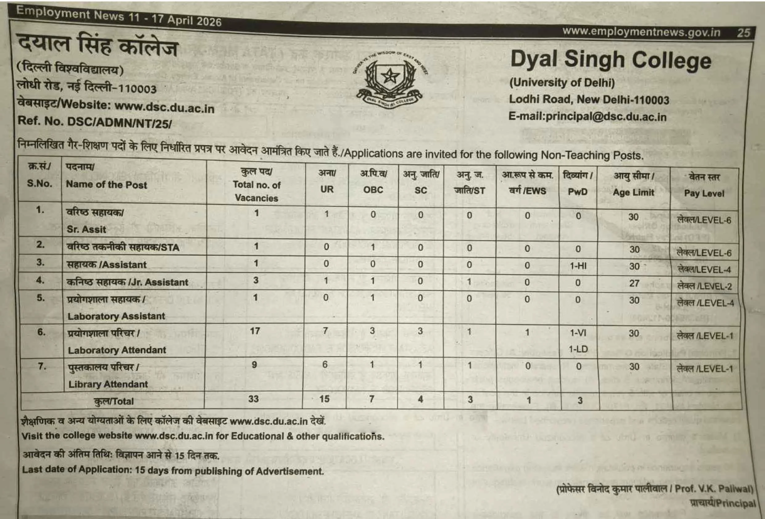 | Recruitment Organization | Dyal Singh College (Delhi University) |