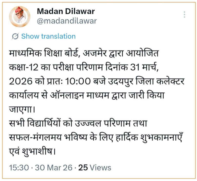 Rajasthan Board 12th Class Result 2026: The Rajasthan Board of Secondary Education (RBSE), Ajmer, is all set to release the RBSE 12th Result 2026 for Arts, Science, and Commerce streams. As per the latest official update, the Rajasthan Board 12th Class Result 2026 will be declared on 31 March 2026 at 10:00 AM through online mode. Lakhs of students who appeared in the examination are eagerly waiting to check their results.