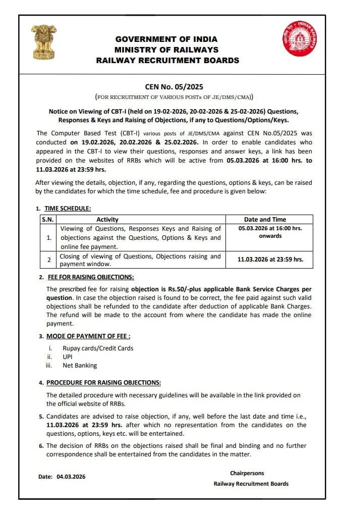 RRB Junior Engineer (JE) Recruitment 2025 Important Links