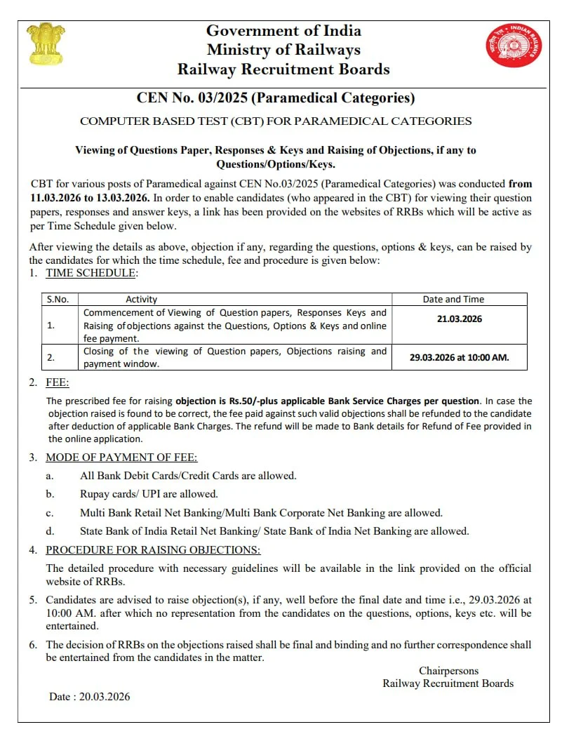 The RRB Paramedical Staff Recruitment 2025 Notification PDF was released on 23rd July 2025 at rrbapply.gov.in, announcing a total of 434 vacancies for Paramedical Staff Posts. Candidates fulfilling the eligibility norms may submit their offline form at www.rrbapply.gov.in. The last date to submit the application form is 8th September 2025. Candidates must continue reading this article to get complete details on the Railway Paramedical Staff Recruitment 2025, such as key dates, vacancy details, eligibility criteria, salary details, and selection procedure.