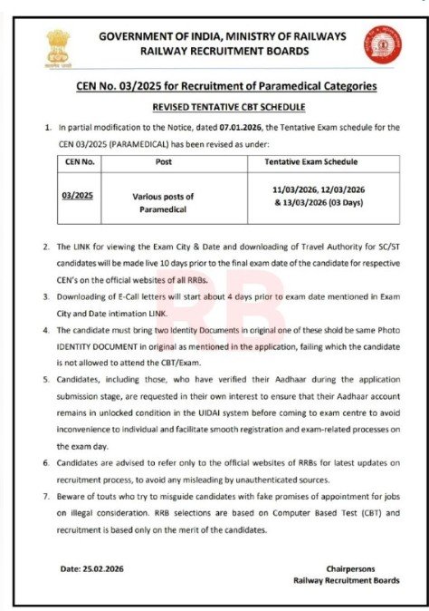RRB Paramedical Staff Recruitment 2025: The Railway Recruitment Board (RRB) released a short notification on July 23, 2025, through the Employment Newspaper. The registration process for the RRB Paramedical Staff will start on 9th August 2025 at rrbapply.gov.in. Candidates with B.Sc, GNM, and D.Pharm can apply online. The selection process for the RRB Paramedical Staff includes CBT, Document Verification, and Medical Examination. Candidates who are interested in the vacancy details & completed all eligibility criteria can read the notification and apply online.