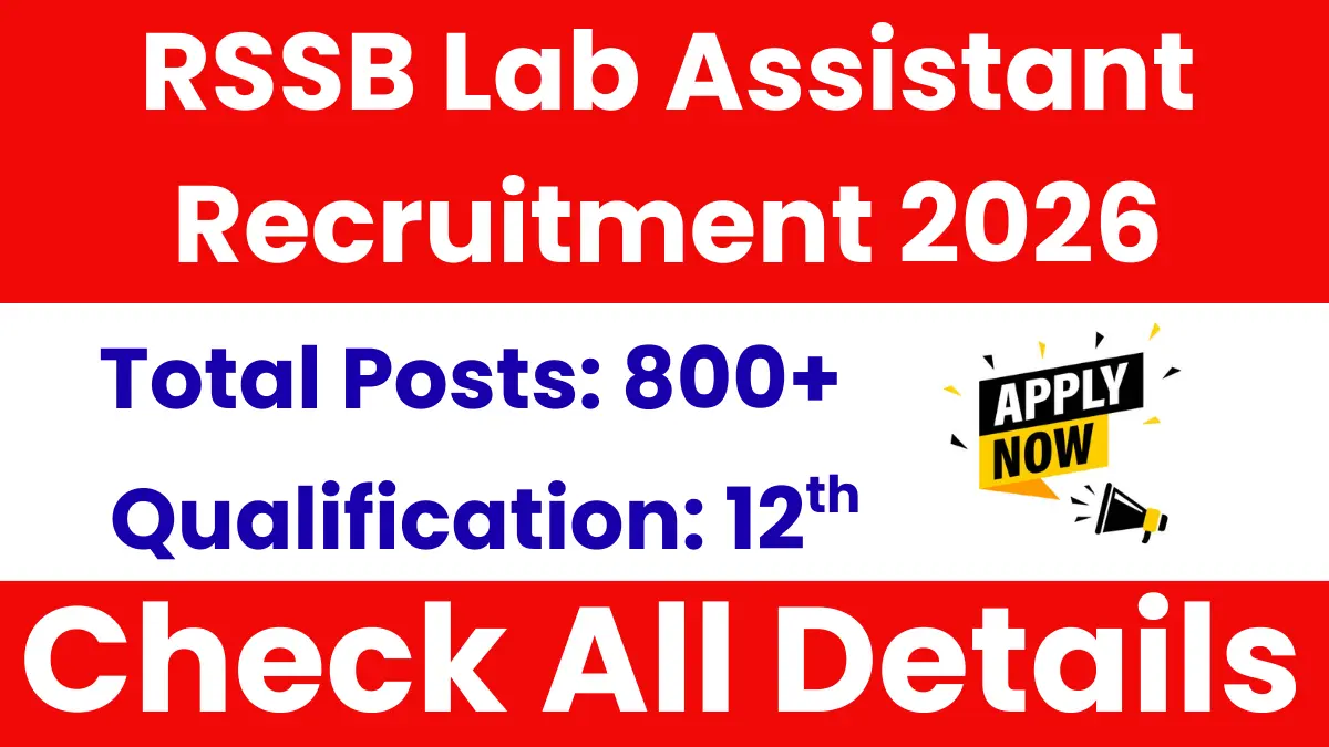RSSB Lab Assistant Recruitment 2026: The Rajasthan RSSB has Released the official Notification for the recruitment of Lab Assistant Posts. The total Number of posts for RSSB Lab Assistant Recruitment 2026 is 804. The RSSB Lab Assistant Recruitment 2026 Notification has been released on 24 January 2026 and Online Application will be accepted from 27 January 2026 to 25 February 2026.
