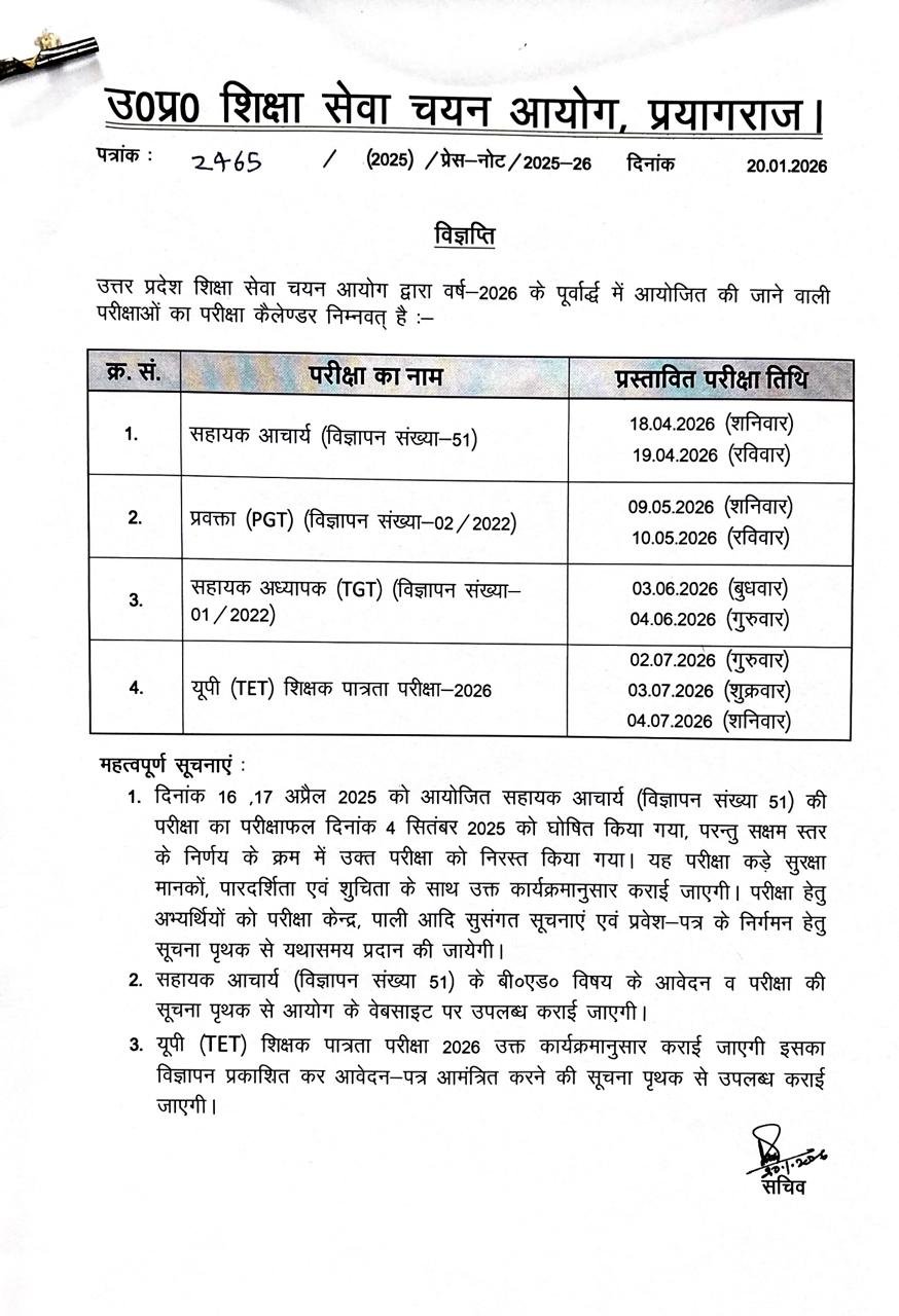 Candidates appearing for exams like Teaching, UPTET and other posts can check their respective exam months in the calendar. The commission may revise the dates if required, so candidates are advised to visit the official website regularly. Admit cards will be released separately before each examination. Applicants should complete the syllabus and revision well before the scheduled exam dates to improve their performance.